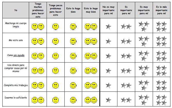 Cuando tenemos que realizar una evaluación, optamos por utilizar valoraciones que miden competencias y habilidades de manera cuantitativa y/o cualitativa. Seleccionamos la herramienta que vamos a utilizar en función del área u objetivo que tenemos en mente. Muchas veces, nos centramos en trabajar componentes o funciones concretas, pero estas mejoras en el desempeño no siempre implican que el estudiante se sienta más competente o que mejore o favorezca su participación en una tarea o situación concreta. La terapia ocupacional tiene como objetivo mejorar el desempeño en actividades que son significativas para las personas, por lo que parece lógico tener en cuenta su opinión a la hora de realizar la valoración y selección de los objetivos a trabajar. Para ello, podemos utilizar distintas valoraciones o cuestionarios que nos permiten conocer la opinión de los niños con los que trabajamos.