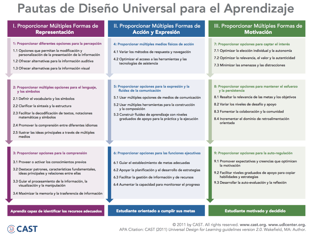 Esquema general diseñado por el CAST sobre el DUA: